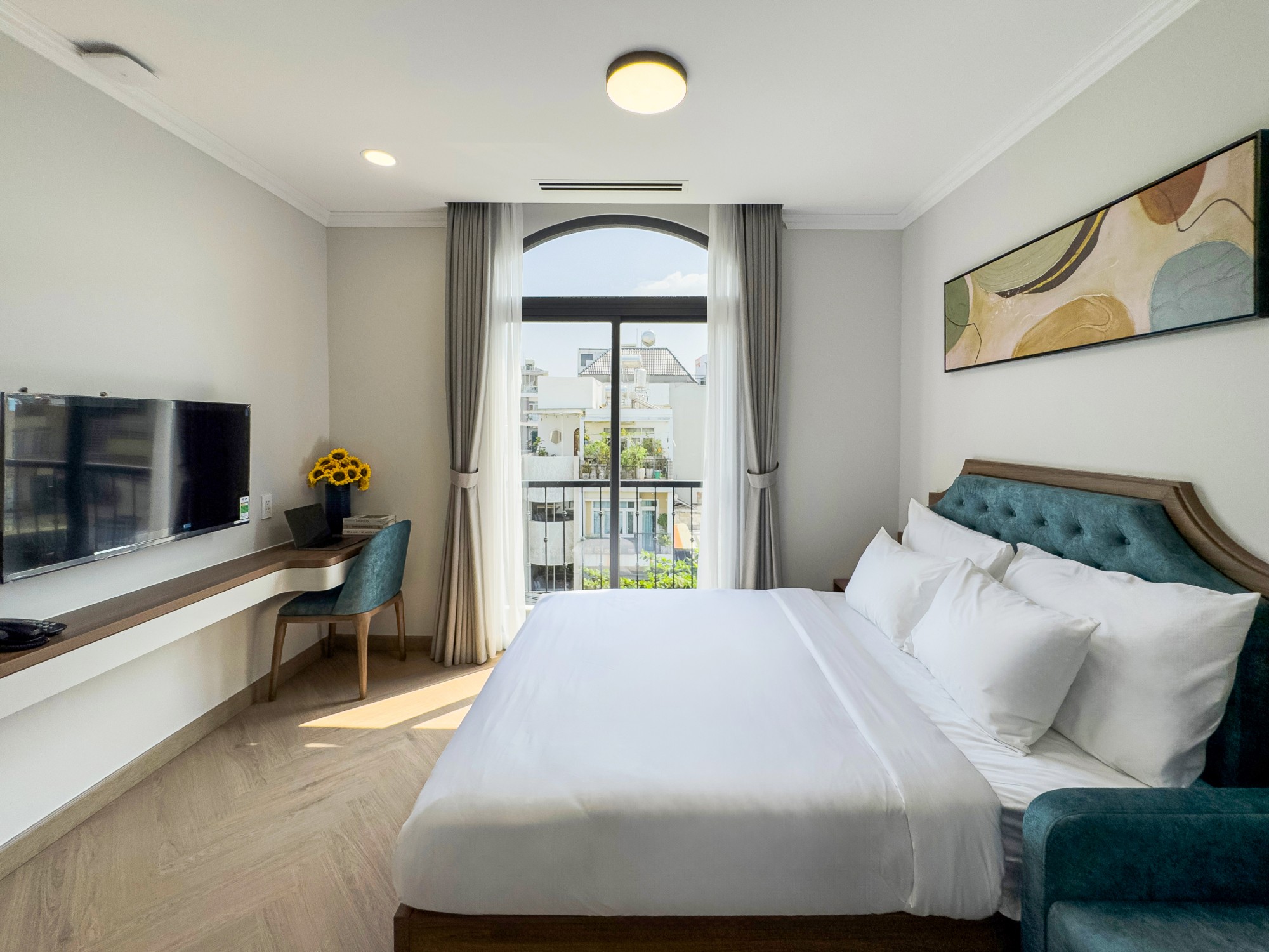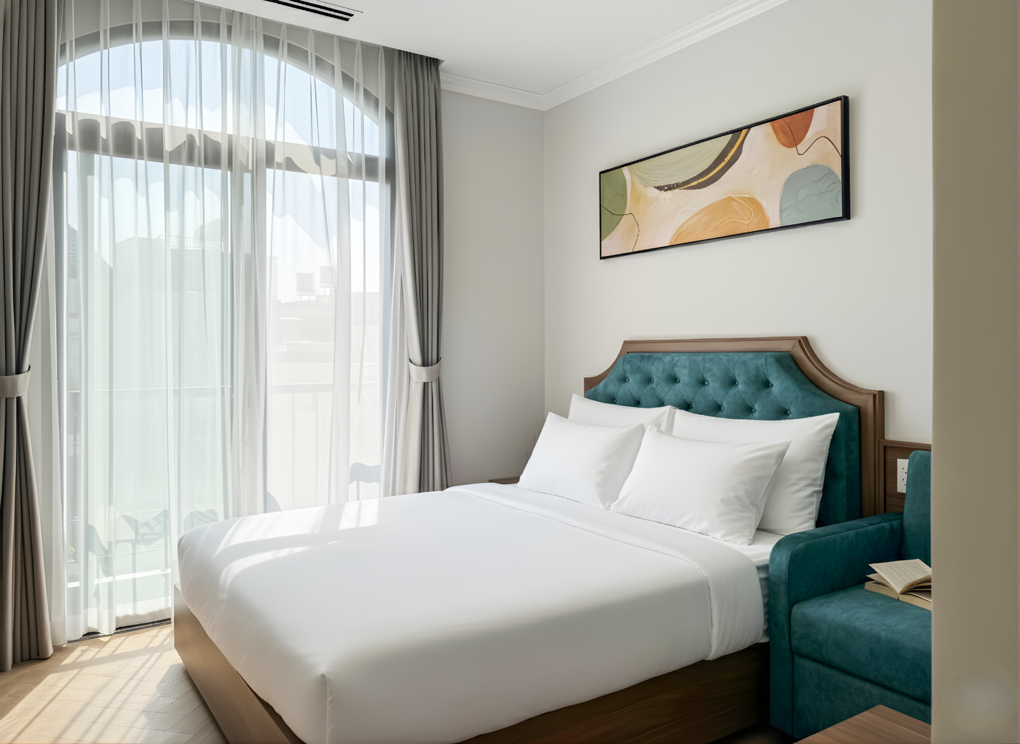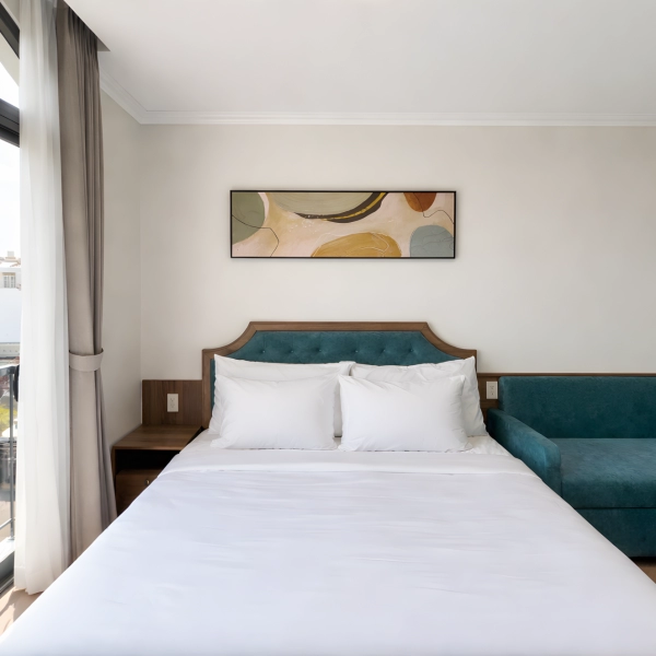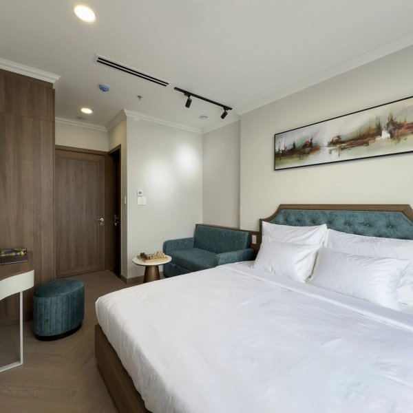 Tại đây, mỗi căn hộ không chỉ là nơi để ở, mà là một khoảng trời riêng yên tĩnh để bạn tái tạo năng lượng sau những giờ làm việc căng thẳng. Những ô cửa kính lớn đón trọn ánh sáng tự nhiên, giúp bạn dễ dàng quan sát nhịp sống năng động của Sài Gòn nhưng vẫn giữ được sự riêng tư tuyệt đối.